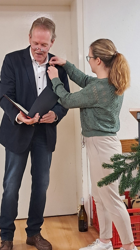 Der 1.Vorsitzende und aktive Musiker Manfred Giel erhielt aus den Händen von Lisa Gaß vom Musikkreis Donnersberg die goldene Ehrennadel mit Ehrenbrief des Landesmusikverbandes Rheinland-Pfalz für seine 50.-jährigen Verdienste im Verein und um die Musik. Dirigent und stellvertretender Vorsitzender Johann Dewald wurde von ihr mit dem goldenen Ehrenzeichen für 30 Jahre ausgezeichnet.